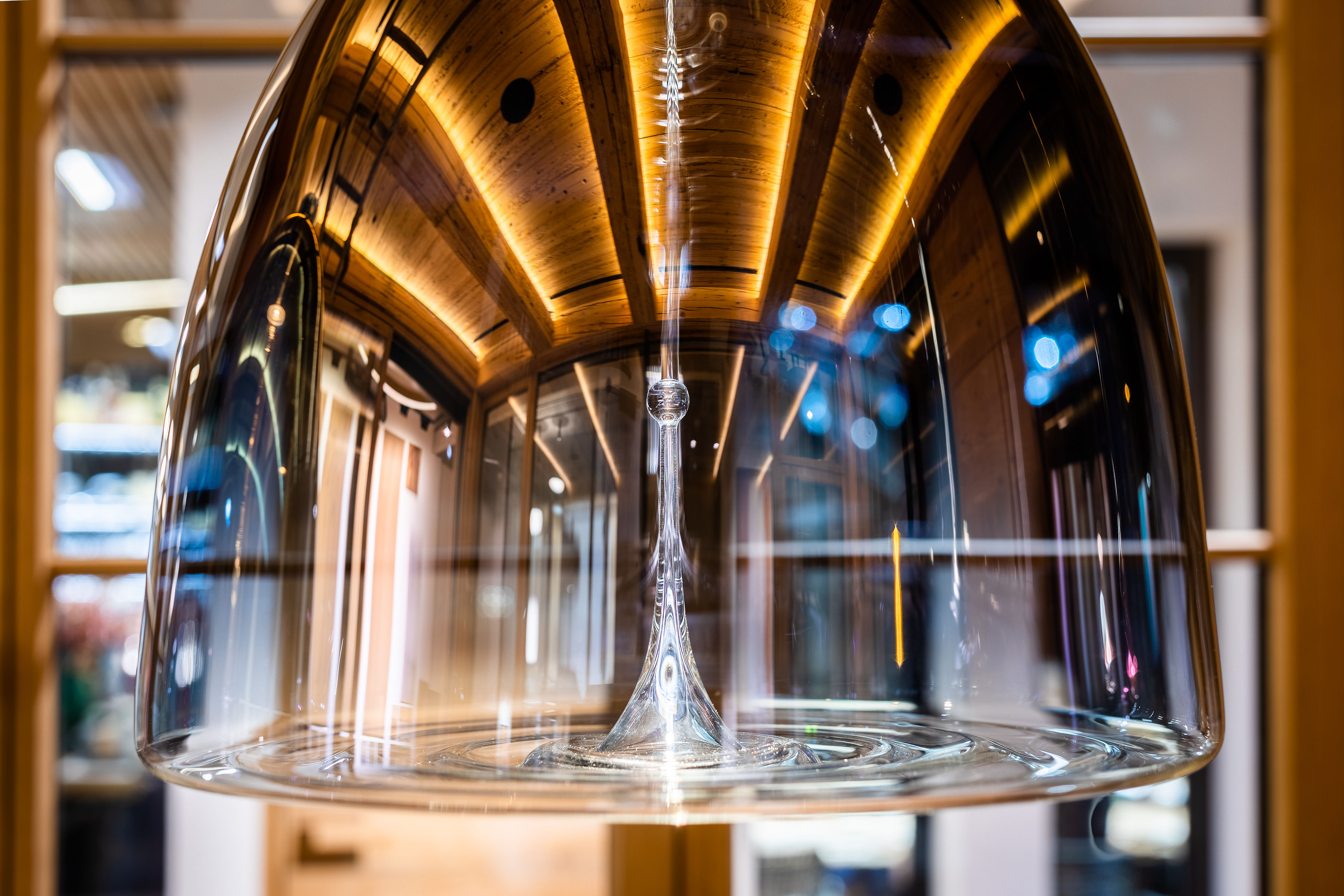 Vibration, quiver, waves as well as the softness of touch at which a drop falls on the water surface. Even though it is hidden behind a layer of metal surface, it still transfers persistent emotions. The object is a moment of uniqueness of the mere time that provokes a reaction and thus creates an unrepeatable detail. It whispers, calms, captivates.